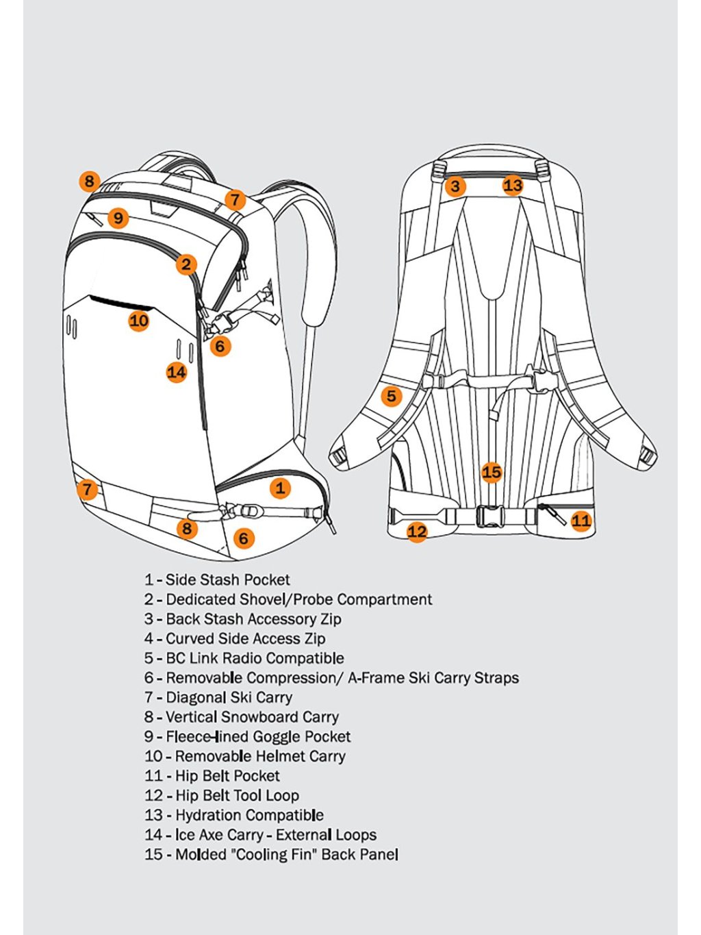 Tento všestranný kompaktní batoh, který je navržen tak, aby vás podpořil při celodenním průzkumu backcountry, je vybaven odolnými materiály s povrchovou úpravou ripstop a přihrádkami na veškerou výbavu. Boční úložná kapsa eliminuje nutnost sundávat batoh tím, že umožňuje snadný přístup k nejčastěji používaným věcem. Zadní úložný prostor umožňuje rychlý přístup k vysílačce BC Link™. Testováno a zdokonaleno profesionály v oblasti backcountry.